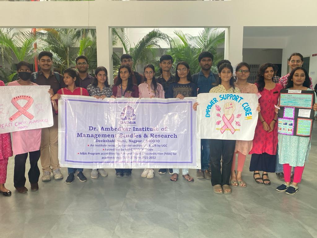 The Breast Cancer Awareness event at organised by BBA Department of DAIMSR on 13th oct under the leadership of Project Coordinator Garima Patil and event Coordinator Mohini Ghosh. To showcase solidarity with fighters and survivors of breast cancer, a pink ribbon movement, pink Walkathon, poster were designed. Attendees, including students, faculty members, and volunteers, donned pink ribbons, demonstrating their support for those affected by breast cancer.